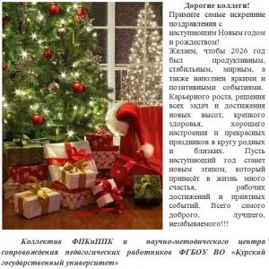 На базе ФИП ФГБОУ ВО «Курский государственный университет» в период с 8 декабря 2025 года по 22 декабря 2025 года осуществляется реализация персонализированной дополнительной профессиональной программы повышения кваПодробнее…